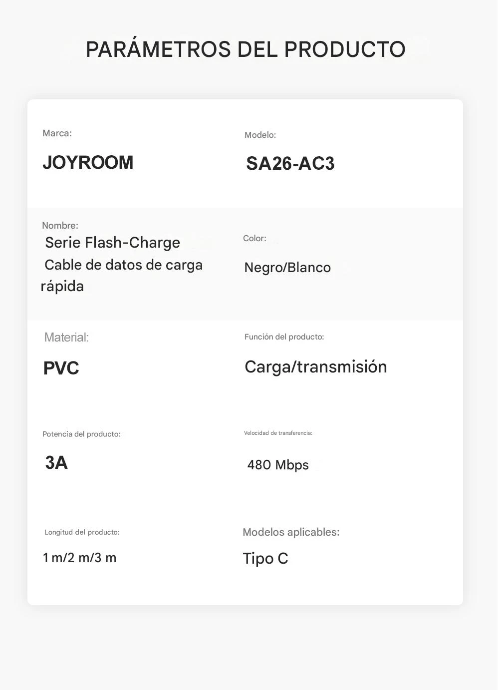 El Cable SA26-AC3 Flash-Charge Series es la opción perfecta para quienes buscan un cable de carga confiable, rápido y duradero.