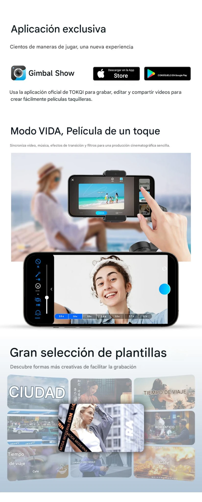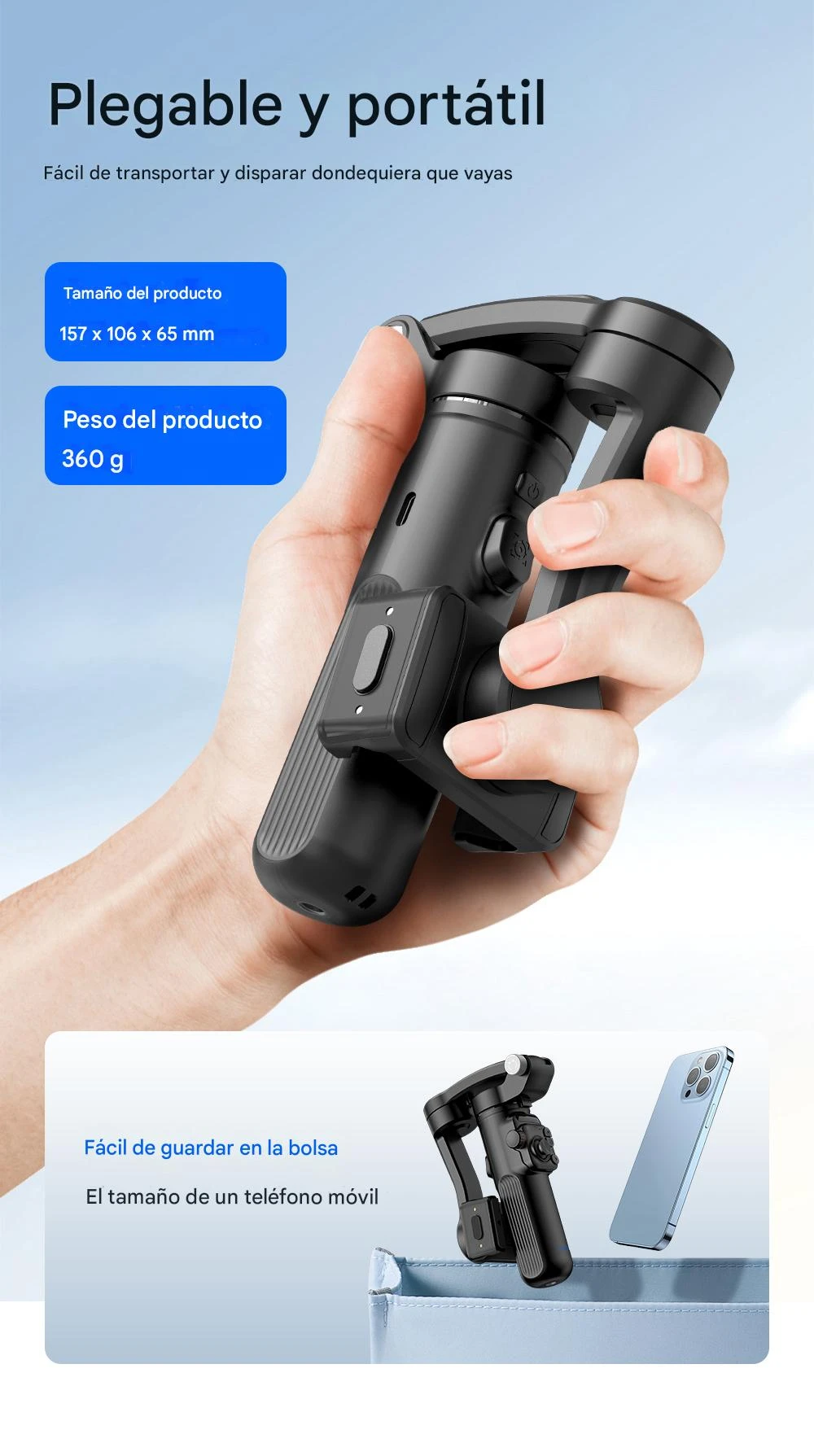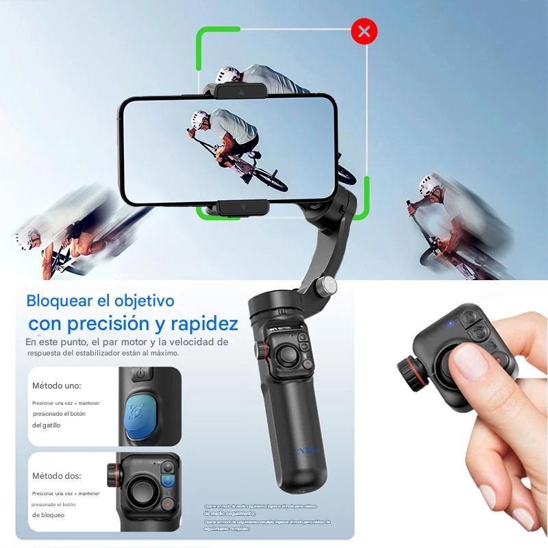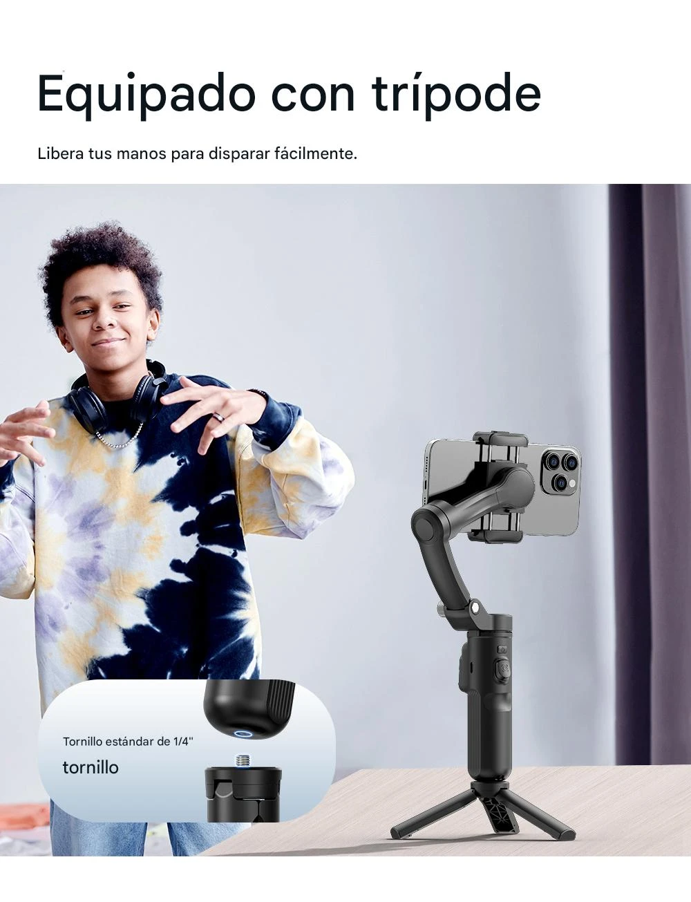 Un estabilizador inteligente y versátil para móviles, diseñado para tomas suaves y profesionales en cualquier situación. Compacto, liviano y con control remoto inalámbrico, ofrece seguimiento AI, modos de toma avanzados y compatibilidad con trípode para un flujo de trabajo completo.