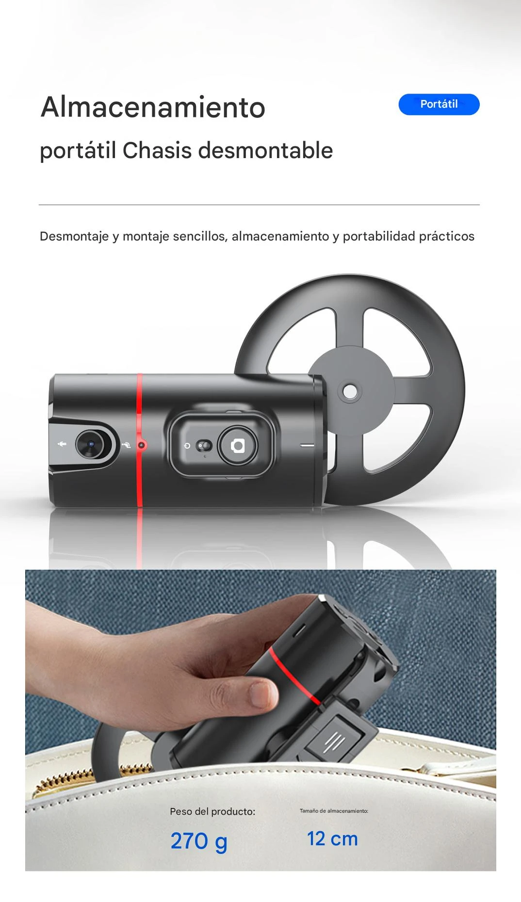 - Dimensiones de almacenamiento: aprox. 12 cm