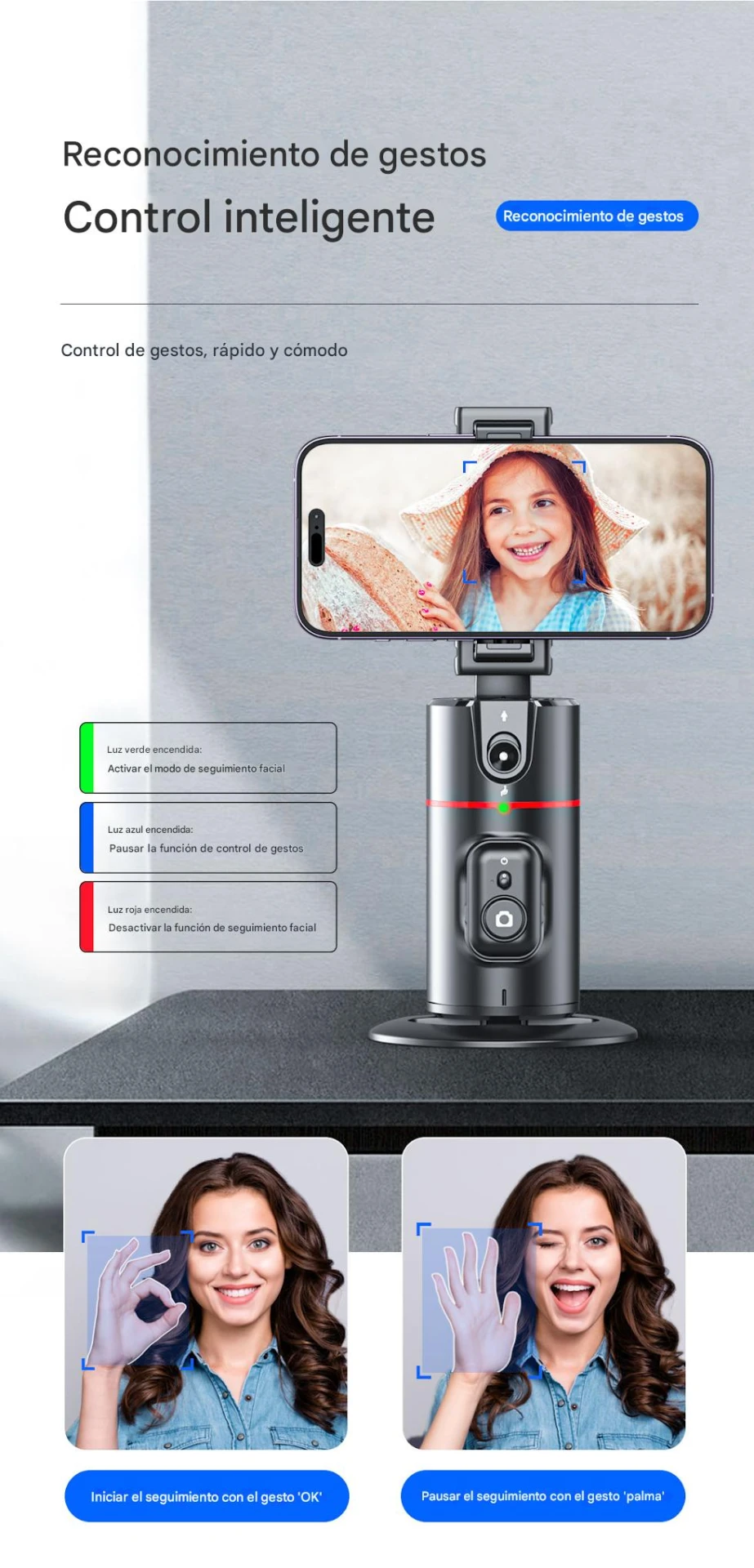 Estabilizador Gimbal de escritorio P02 para celular con reconocimiento facial Rotacion 360º
