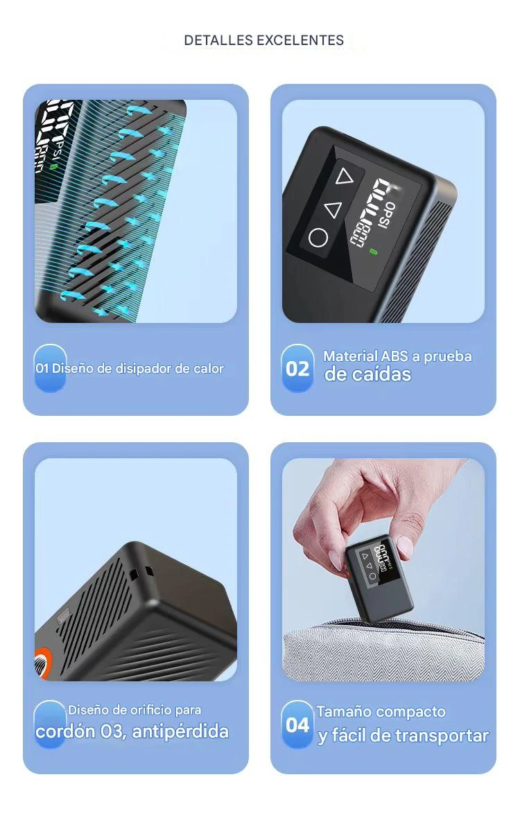 - Diseño compacto y liviano, fácil de transportar