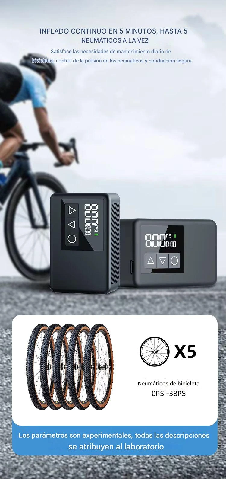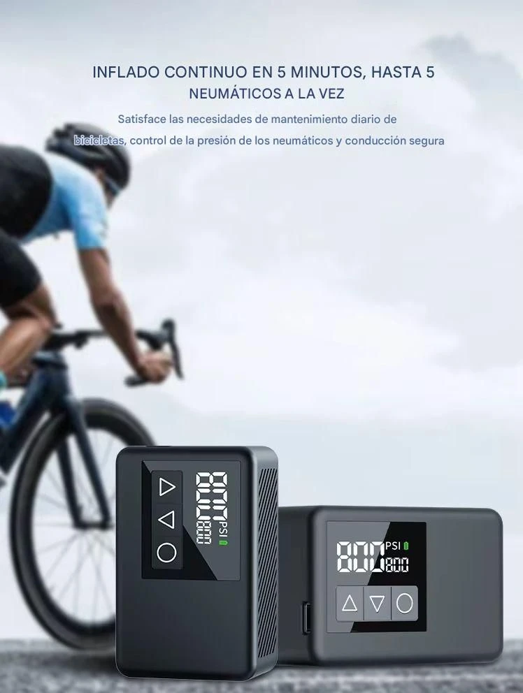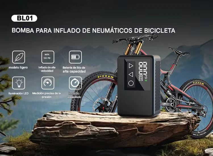 El modelo BL01 es una inflador de neumáticos de bicicleta con diseño compacto y portable, ideal para mantener tus ruedas siempre a punto durante salidas y entrenamientos. caracteristicas: