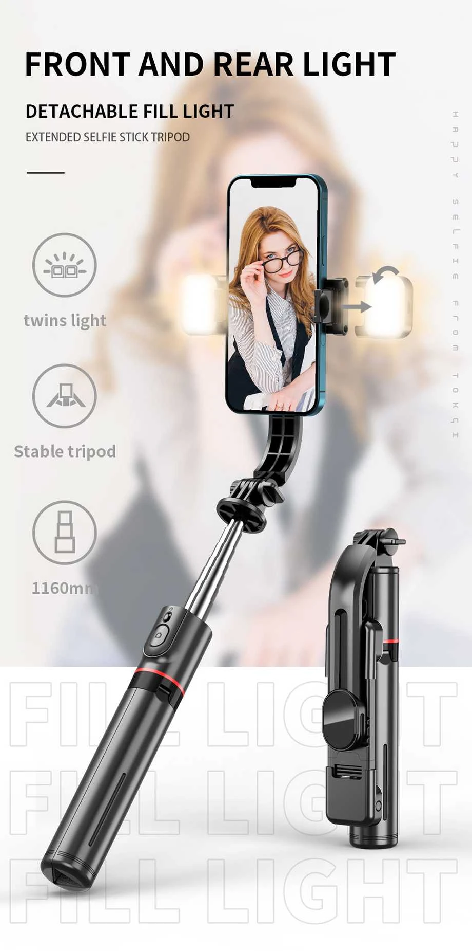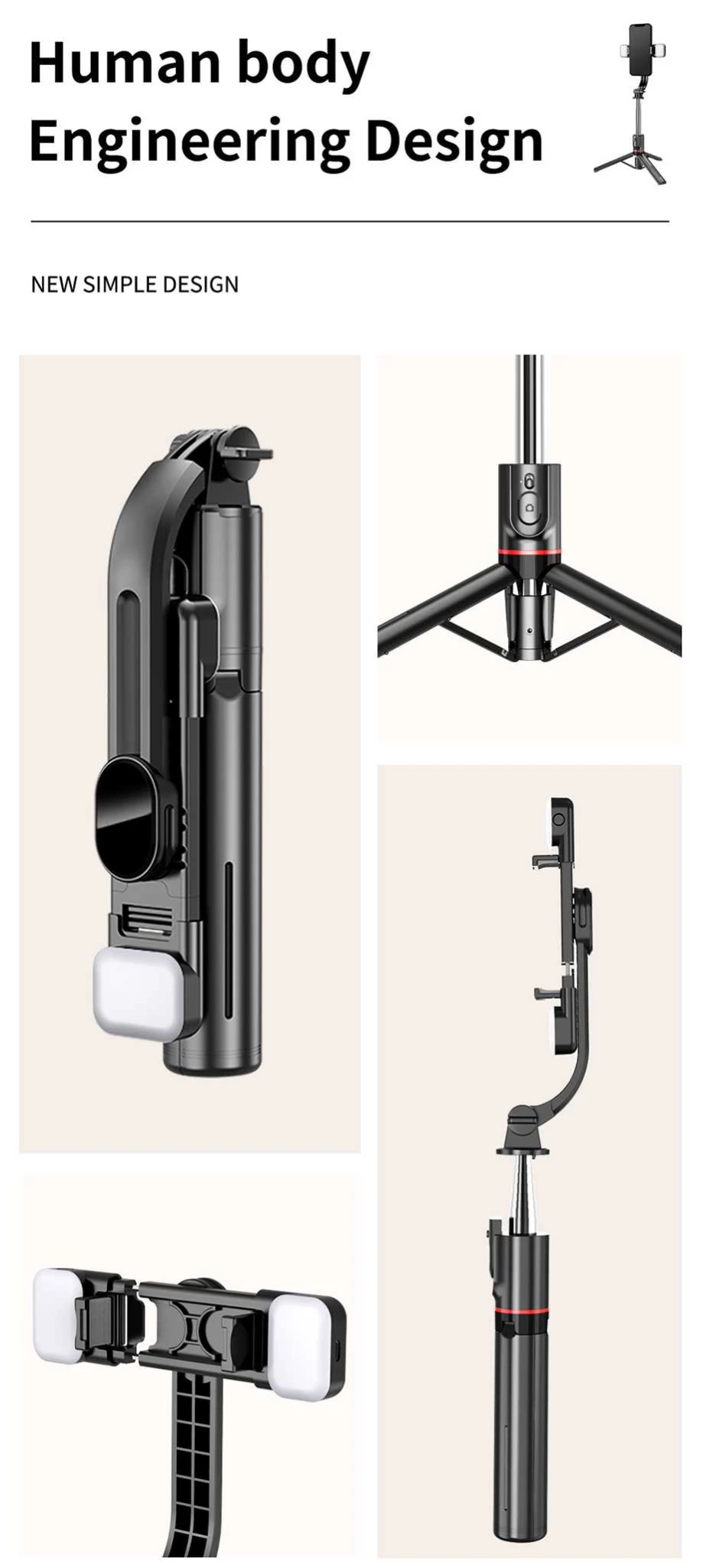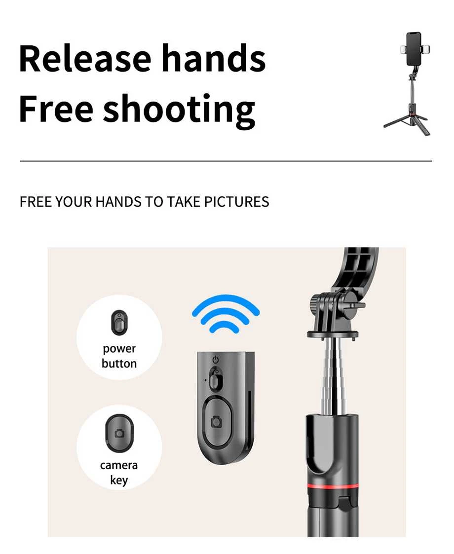 El Selfie Stick L13D es un trípode de selfies profesional, compacto y versátil. Con estructura extensible, soporte monopod invisible y iluminación integrada, te permite tomar fotos y videos de calidad desde cualquier situación, con control total sobre la iluminación y el ángulo.