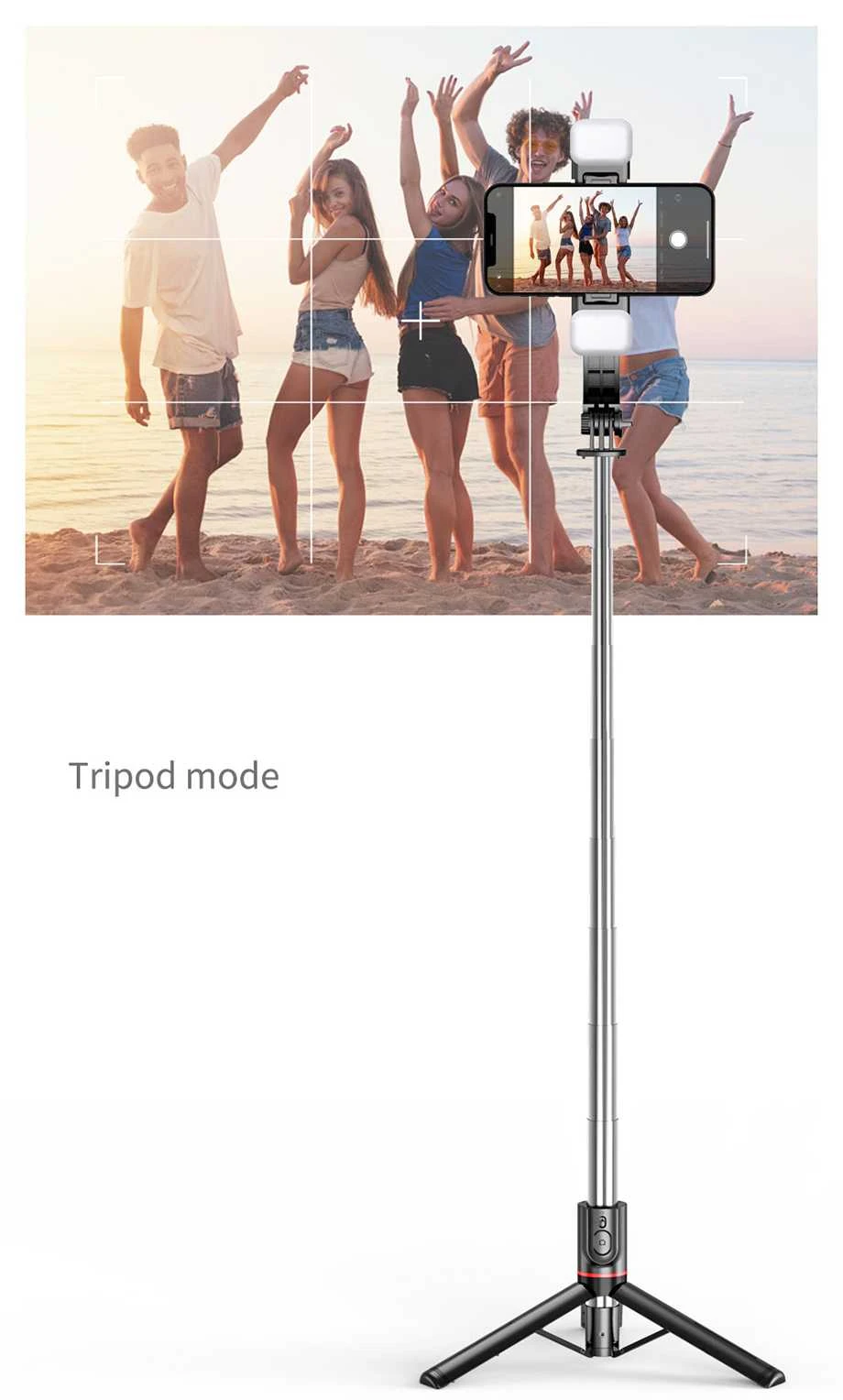 - Extensible y versátil: alcance de hasta 1160 mm para selfies, vídeos en grupo y tomas de ángulo amplio.