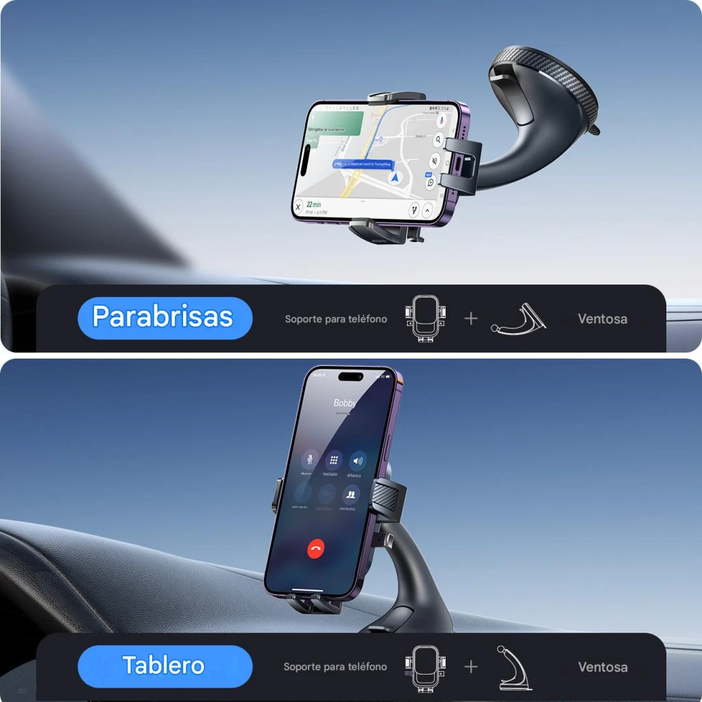 Datos interesantes sobre este tipo de producto: ¿Sabías que los soportes de teléfono con abrazadera como este están diseñados para reducir las distracciones al conducir? Al mantener tu smartphone bien sujeto en tu campo de visión, estos soportes mejoran la seguridad vial, evitando que los conductores tengan que bajar la vista o buscar a tientas el teléfono mientras conducen.