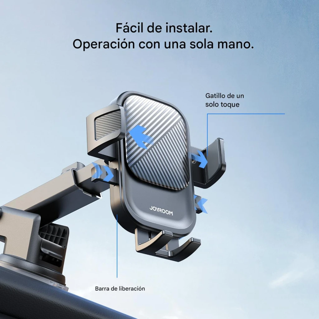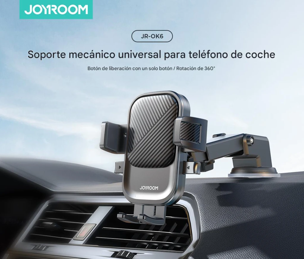 Instalación en segundos: Instalar el soporte Joyroom JR-OK6 en el salpicadero es extremadamente sencillo e intuitivo. Gracias a su sólida ventosa, la instalación solo tarda unos segundos y el montaje es fiable y duradero. Es la solución ideal para quienes valoran el tiempo y la comodidad.